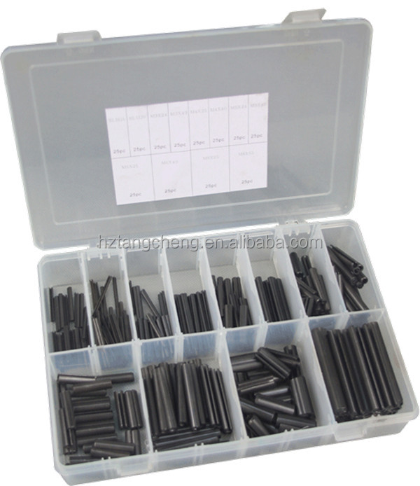 12size,TC BV Certification 300pc Hardware Assorted Roll Pin Set,which can be used for different place.Packing in one plastic box that is good for sale in supermarket.The size can be found in the